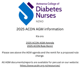 The information on this ACDN site is aimed at Registered Nurses and Nurse Practitioners working in the field of diabetes in New Zealand and members of NZNO. As such, members of the public accessing this website who are not qualified health professionals, should be aware that any information contained here is not meant to replace your relationship with your healthcare provider(s) – please seek assistance from an appropriately qualified medical professional should you have any concerns regarding diabetes or any other health issue.