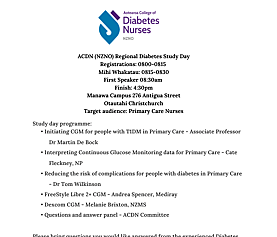 The information on this ACDN site is aimed at Registered Nurses and Nurse Practitioners working in the field of diabetes in New Zealand and members of NZNO. As such, members of the public accessing this website who are not qualified health professionals, should be aware that any information contained here is not meant to replace your relationship with your healthcare provider(s) – please seek assistance from an appropriately qualified medical professional should you have any concerns regarding diabetes or any other health issue.
